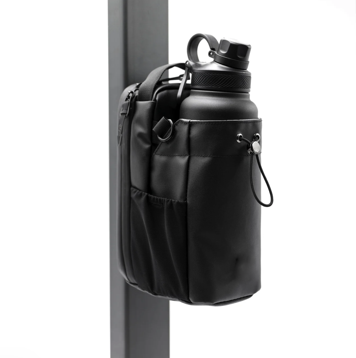 That is more than enough for a full 2L bottle, phone, keys, earbuds, and a towel.